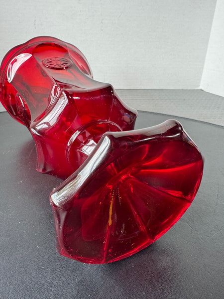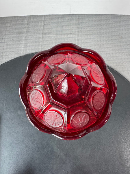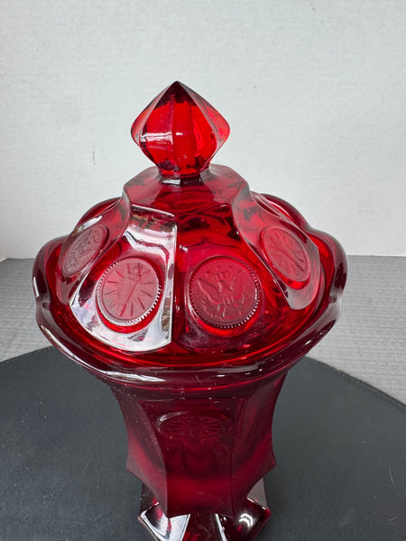 (B) Fostoria Ruby Red Coin Glass Covered Pedestal Urn