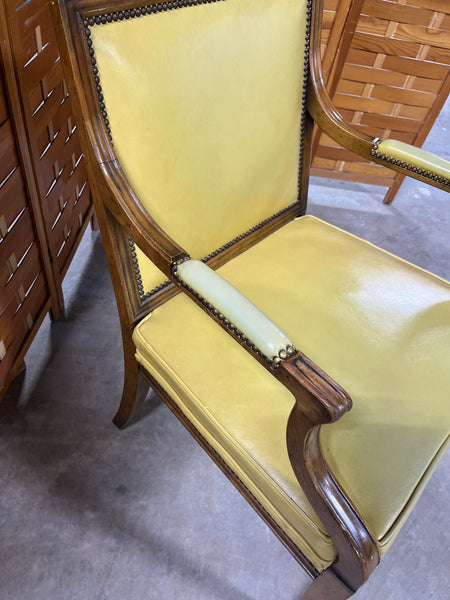 25"x25", 18" seat height, 36" back height. Normal wear/arm rests show age/wear-see photos.
