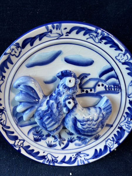 Bella Casa Plate By Ganz Blue And White Chicken Rooster Wall 3D Mini