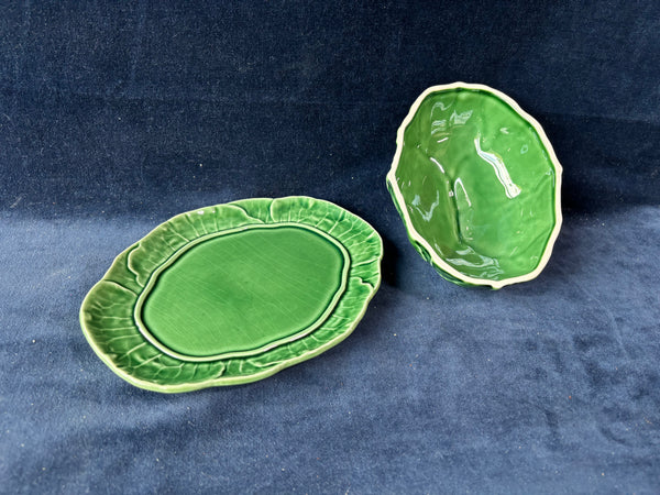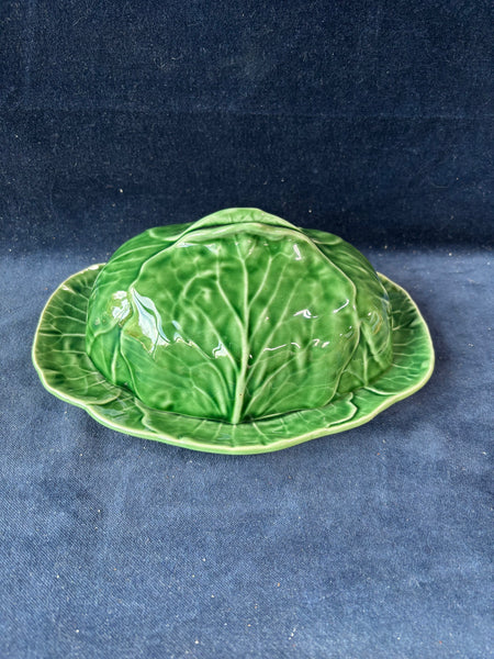 Bordallo Pinheiro Green Cabbage Leaf Butter Dish W/ Lid