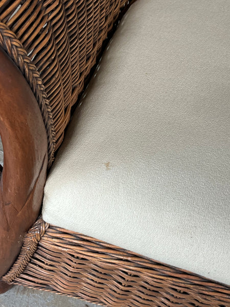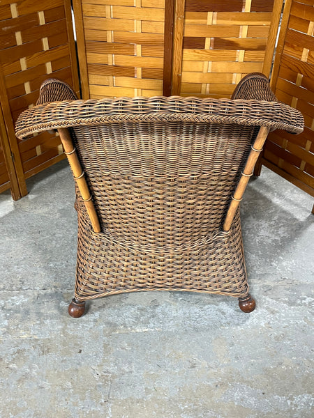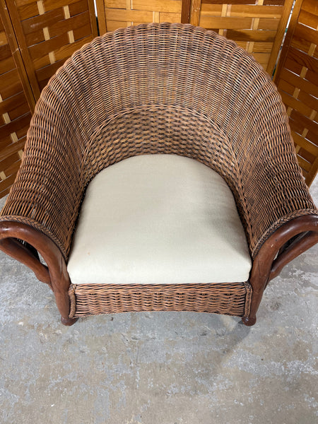 Chair: 34"x27", 16" seat height, 32" back height. Normal wear; spot on cushion on one side-see photos.