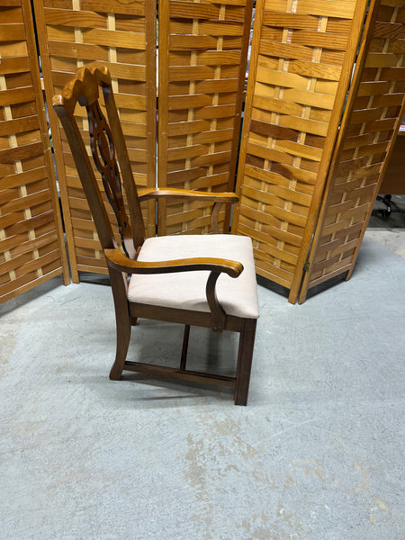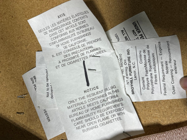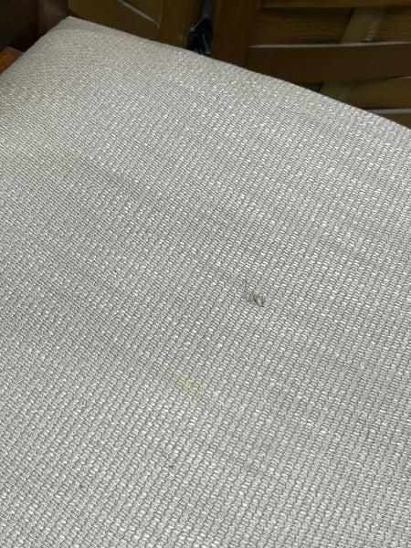 24"x19", 18" seat height, 42" back height. Normal wear; small spot where fabric is fraying/snag
