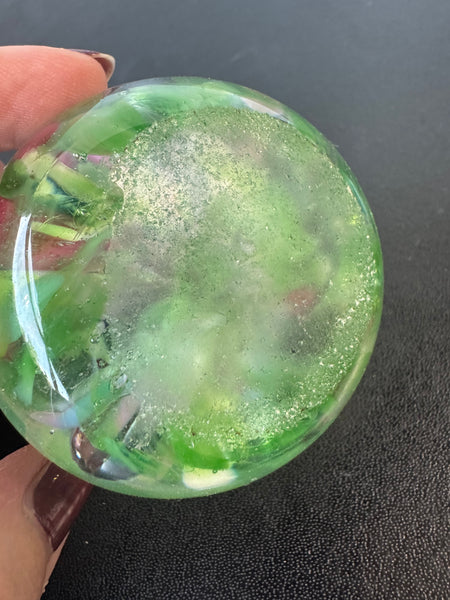 (C) Maude & Bob St. Clair Green Floral Art Glass Paperweight