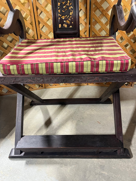 Chinese Horseshoe Back Folding Arm Chair with Cushion