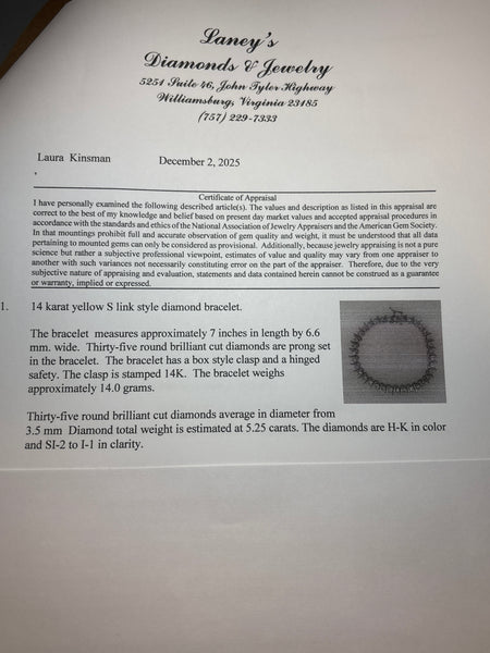 14K Gold S Link Style Diamond Bracelet