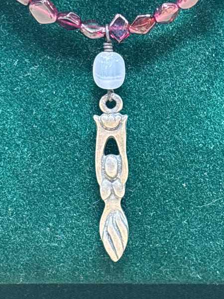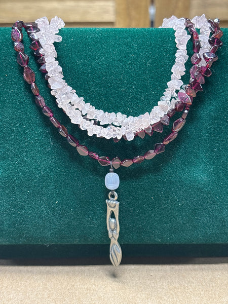 Garnet/Rose Quartz Necklace with Goddess Pendant (Sterling Clasp)