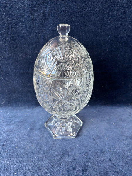 Egg-Shaped Footed Pedestal Clear Cut Glass Candy Dish