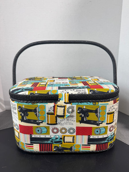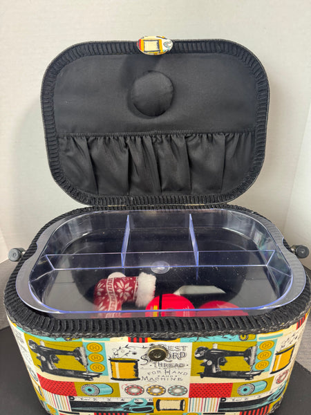 Fabric Covered Vintage Style Sewing Basket with Ribbon and Pin Cushion
