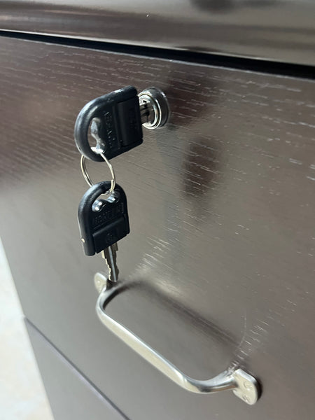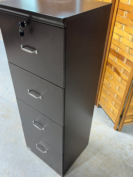 18"x17", 52"H.  Normal wear; Missing 3 metal file support bars. Comes with Key; top drawer locks.