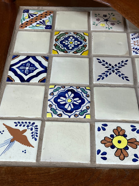 France & Sons Danish Two Tier Corner End Table with Tile Top