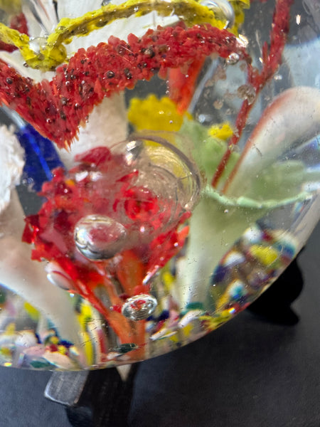 (G) Bubble Floral Garden Art Glass Paperweight on Stand AS IS (READ DESCRIPTION CAREFULLY)