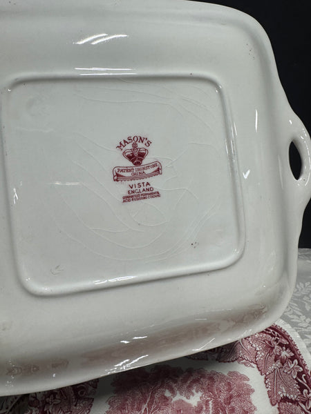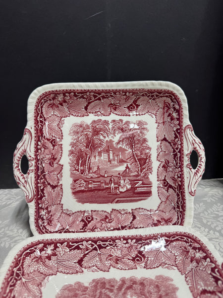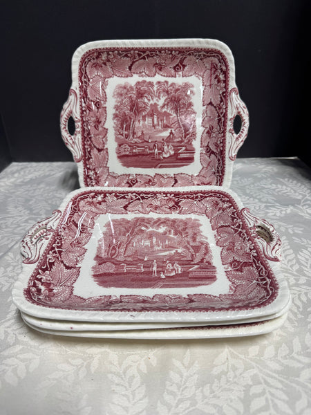 (H) 4-Piece Mason’s England Vista Pink China Square Handled Cake Platters