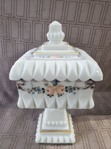 Westmoreland Milk Glass Pedestal Wedding Box Candy Dish