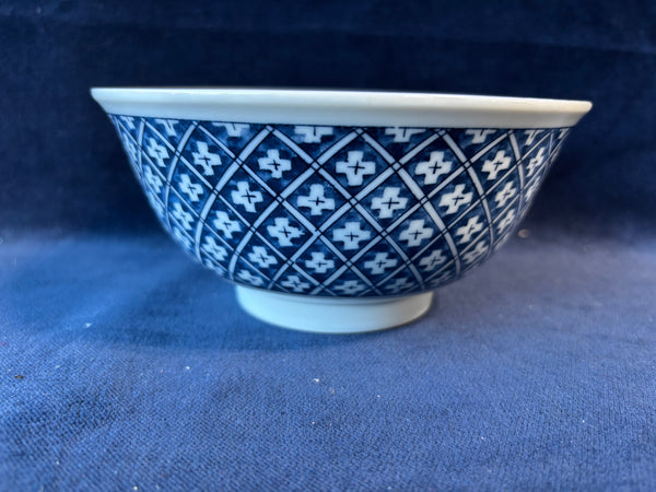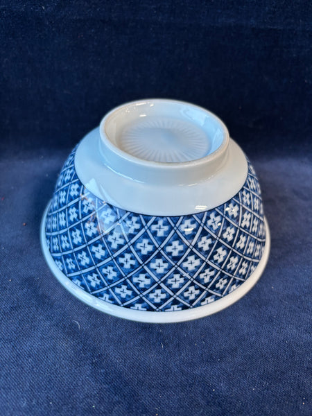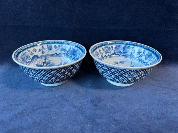 Pair Of Porcelain Blue And White Chrysanthemum Floral Rice Bowls