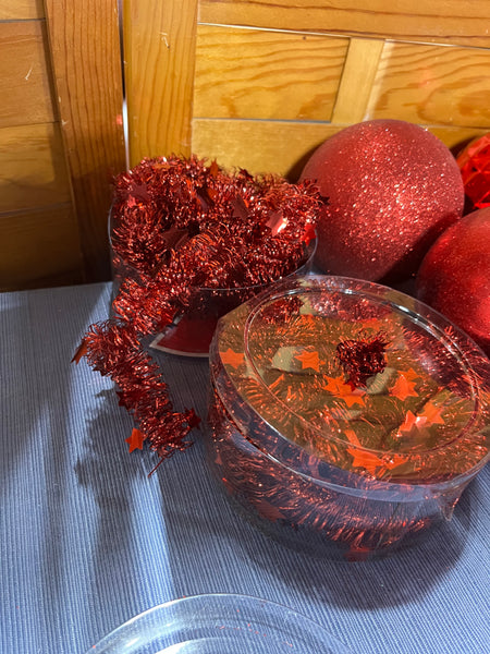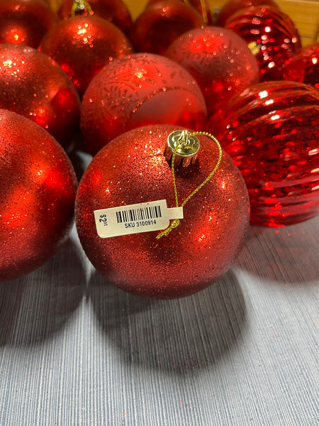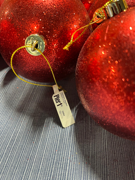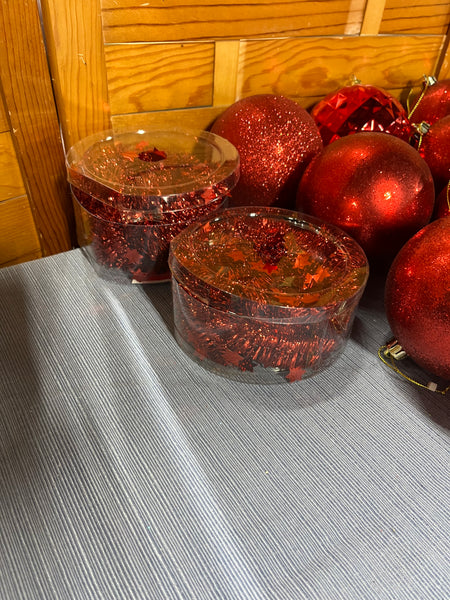 Pier 1 Red Plastic Ornament Balls (26) and Red Tinsel Garland (2 Packs)