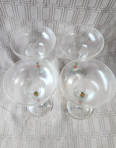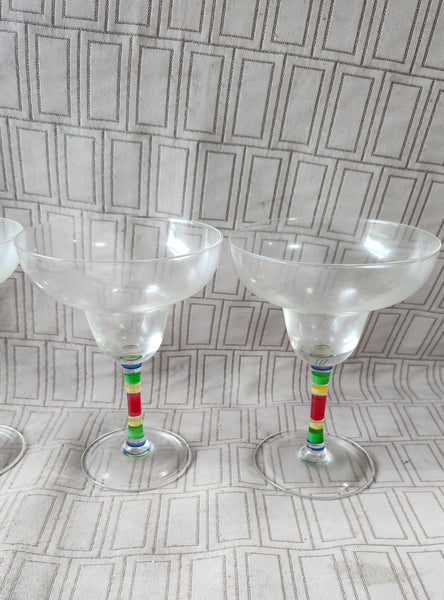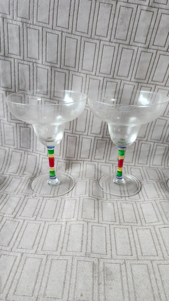 Set of 4 Clear Glass and Multi-Colored Painted Margarita Glasses