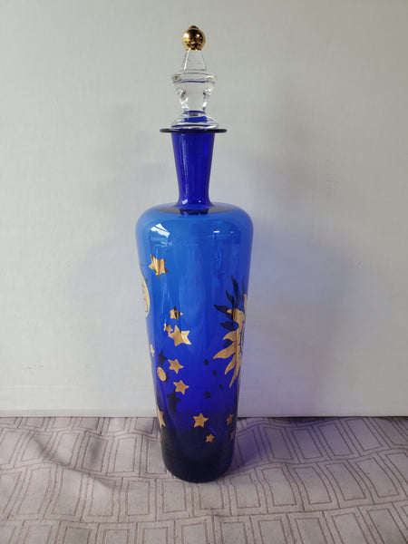 Si-An Cobalt Blue Glass Sun, Stars, and Moon Decanter