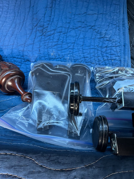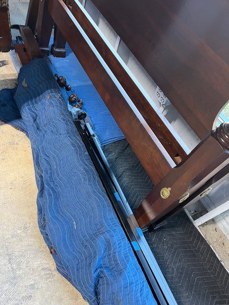 66"W; 52" headboard height, 19" footboard height. Post height is 81" plus 7" removable finial, for total post height of 89". Comes with side rails and metal support slats.