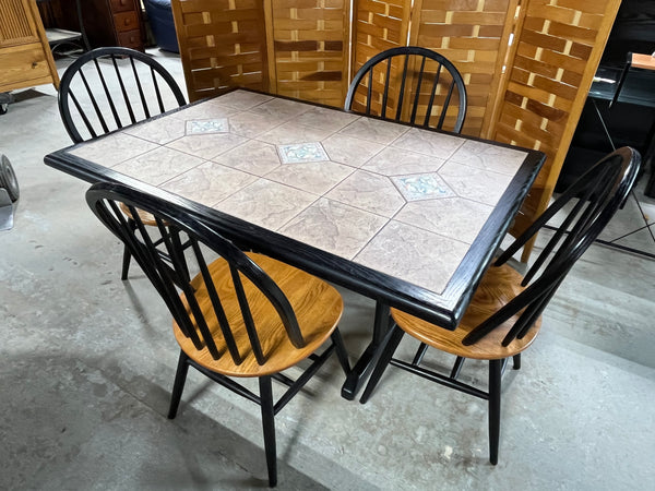 Tile Top Kitchen Table with (4) Windsor Style Chairs