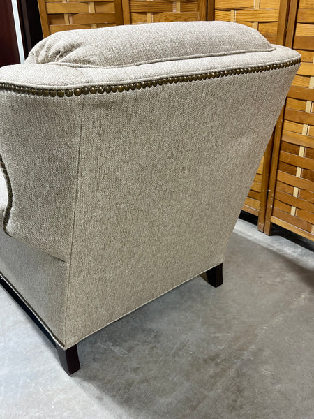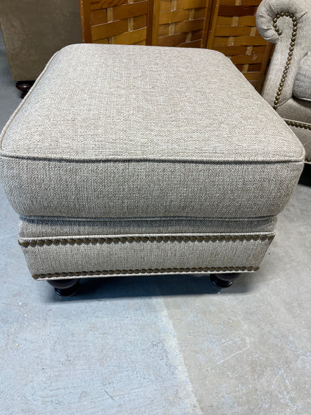 Chair: 36"x36", 21" seat height, 38" back height. Ottoman: 28"x23", 19"H.