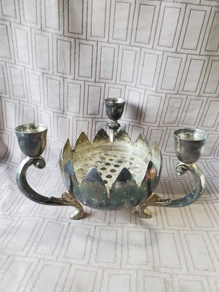 Vintage Silverplate Lotus Flower Candlestick Holder and Vase