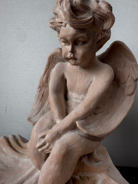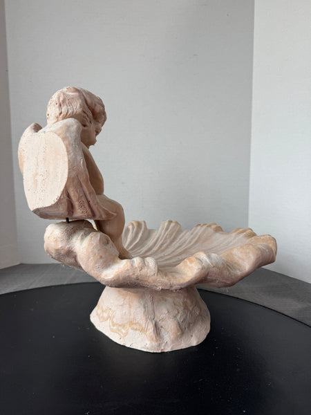 White Washed Terracotta Cherub Shell Bird Bath