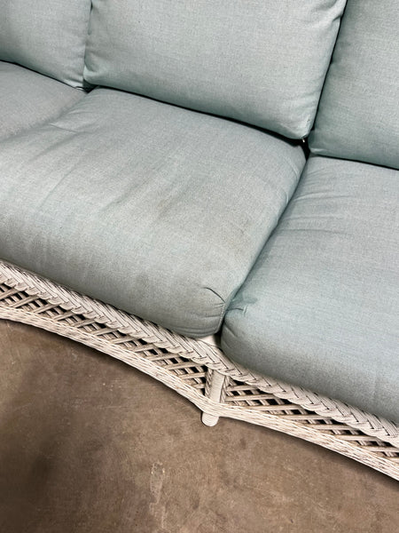 76"x32", 16" seat height, 34" back height.  Normal wear