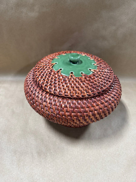 6”H 8 1/2”D // lid doesn’t seem to fit all the way