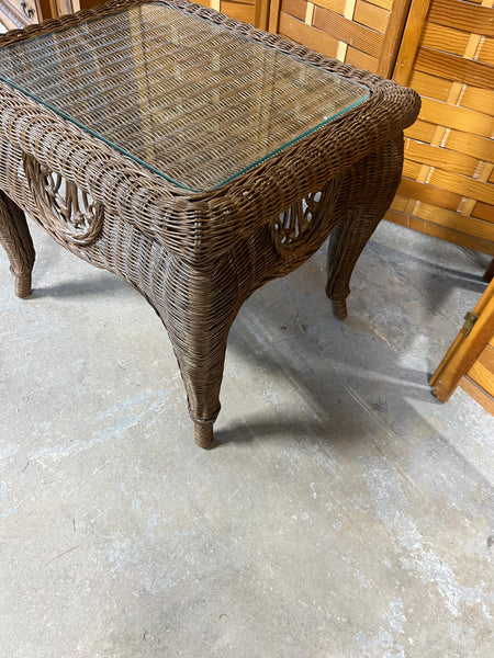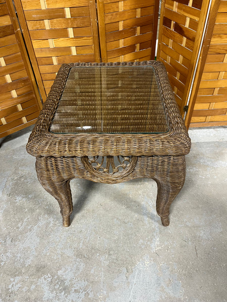 Wicker Side Table with Glass