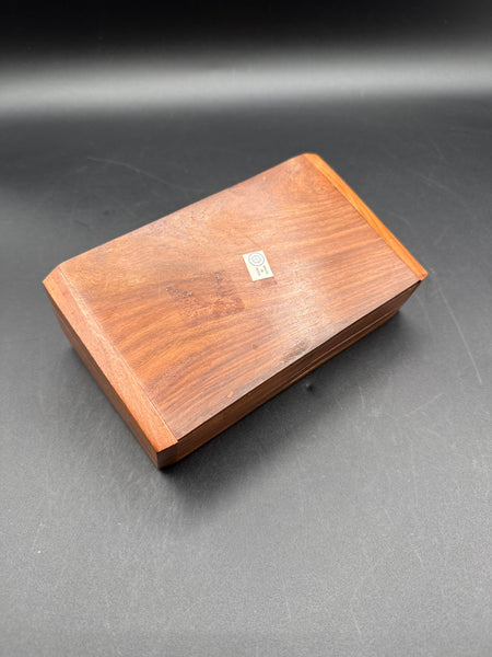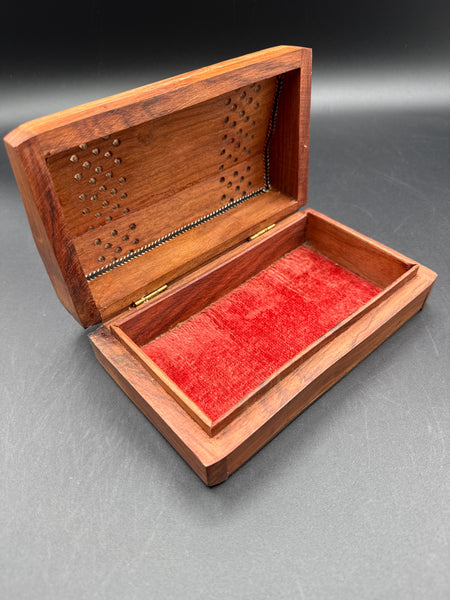 Wooden Trinket Box With Brass Inlaid Elephant And Hearts